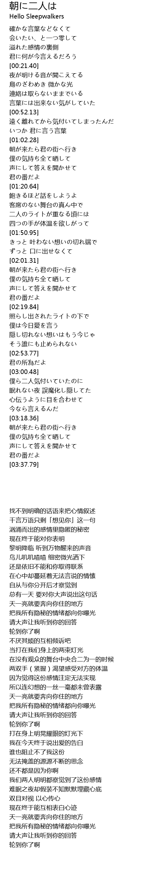 | [02:01.54] | 朝が来たら君の街へ行き |