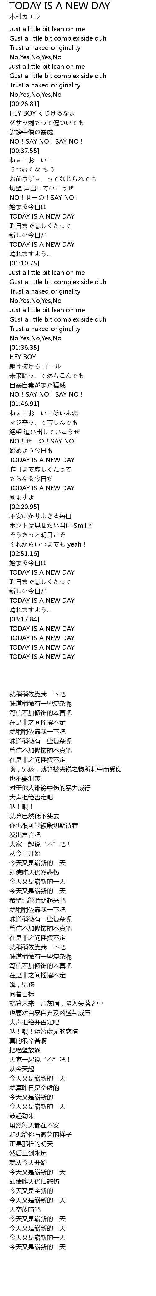 | [03:23.60] | TODAY IS A NEW DAY |
