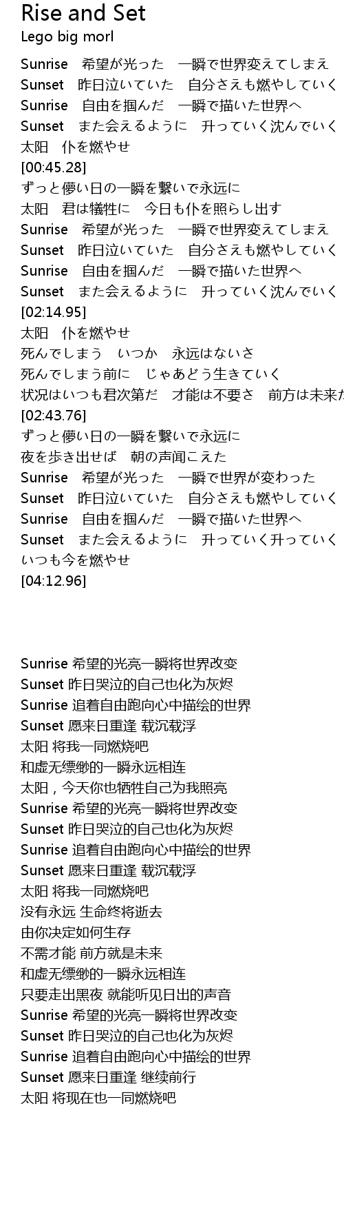 | [03:35.06] | Sunset zuó rì qì zì fēn rán |