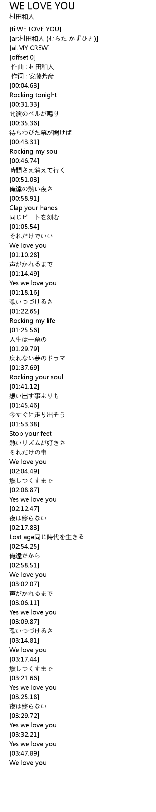 | [00:01.00] | 作词 : 安藤芳彦 |