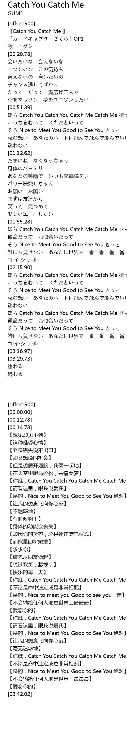 | [01:56.04] | Catch You Catch You Catch Me Catch Me |