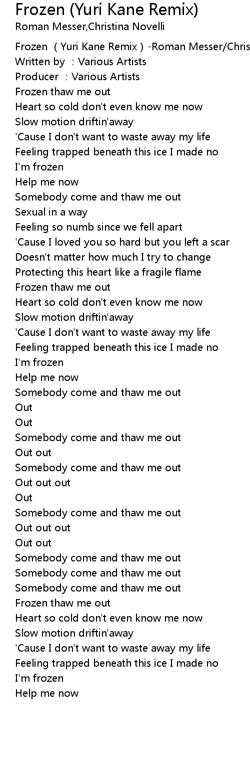 | [00:00.182] | Frozen Yuri Kane Remix Roman Messer Christina Novelli |