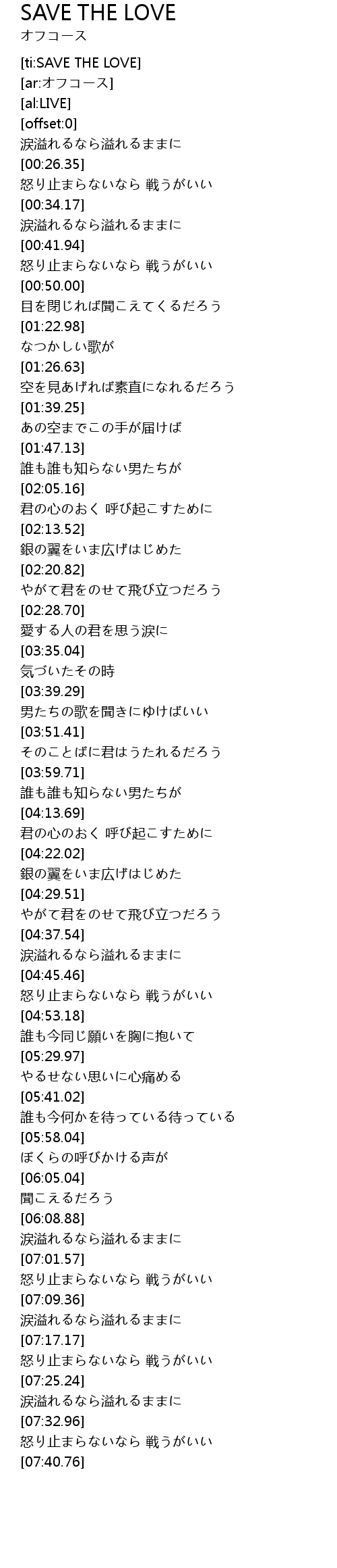 | [ti:SAVE THE LOVE] | |