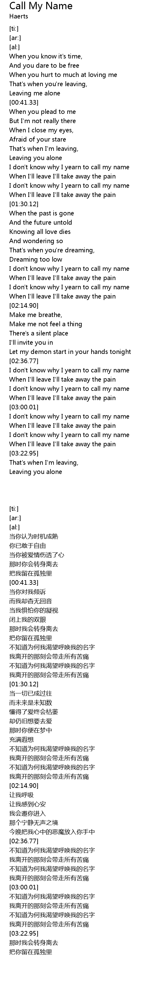 | [03:18.62] | When I'll leave I'll take away the pain |