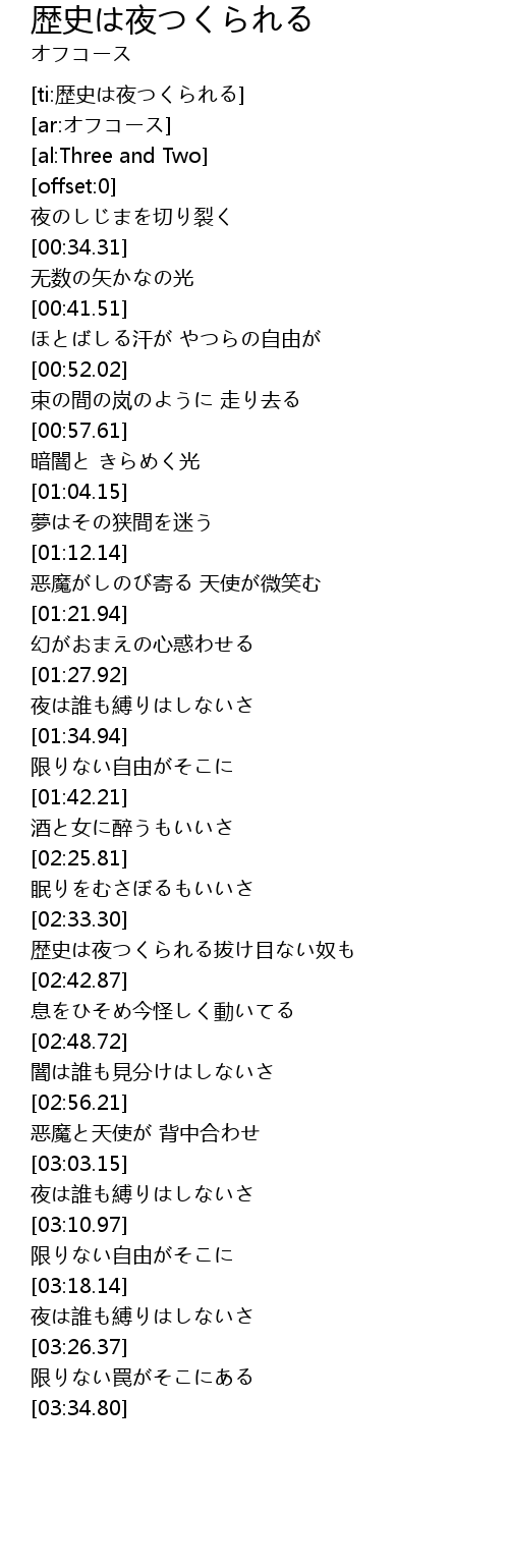| [02:37.01] | 歴史は夜つくられる拔け目ない奴も |