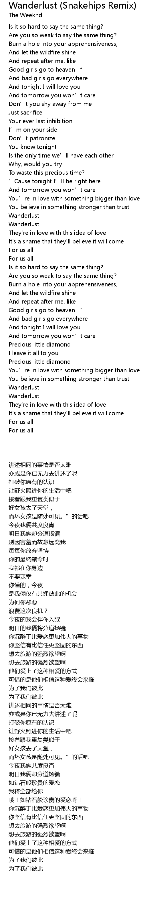 | Album | Wanderlust (Snakehips Remix) |