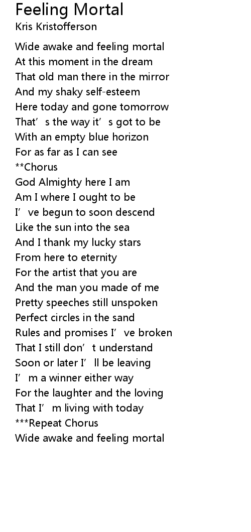 | Wide awake and feeling mortal |