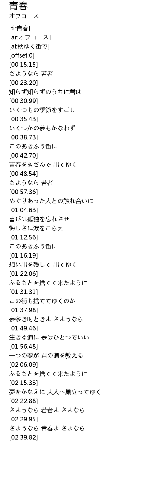 | [00:43.69] | 青春をきざんで 出てゆく |