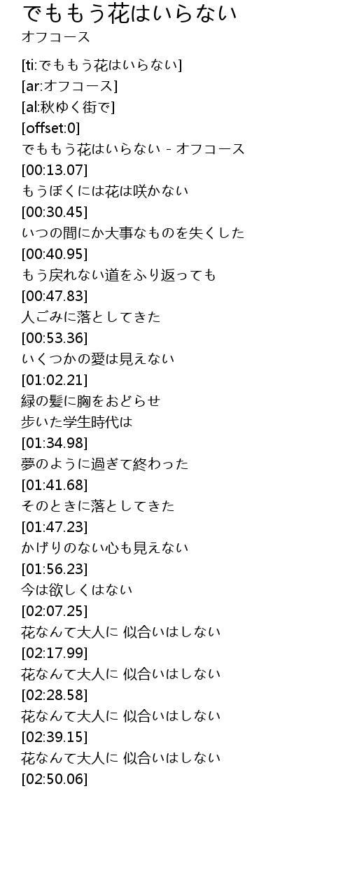 | [02:29.77] | 花なんて大人に 似合いはしない |