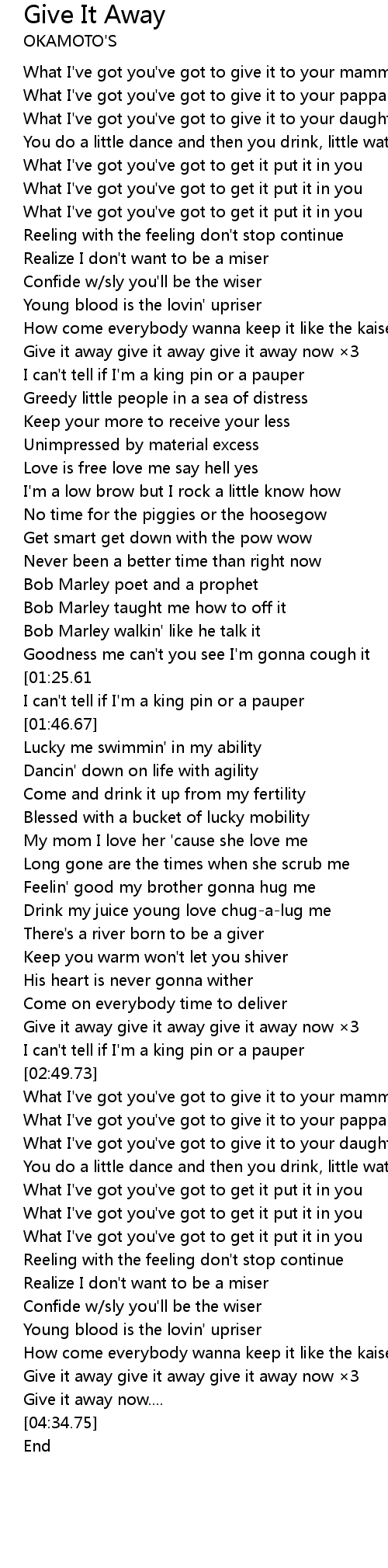 | [01:35.99][01:25.61] | Give it away give it away give it away now ×3 |