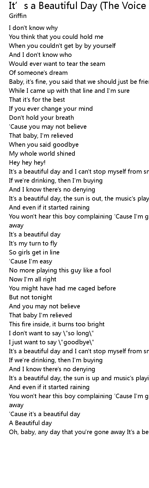 Oh, baby, any day that you're gone away It's a beautiful day |