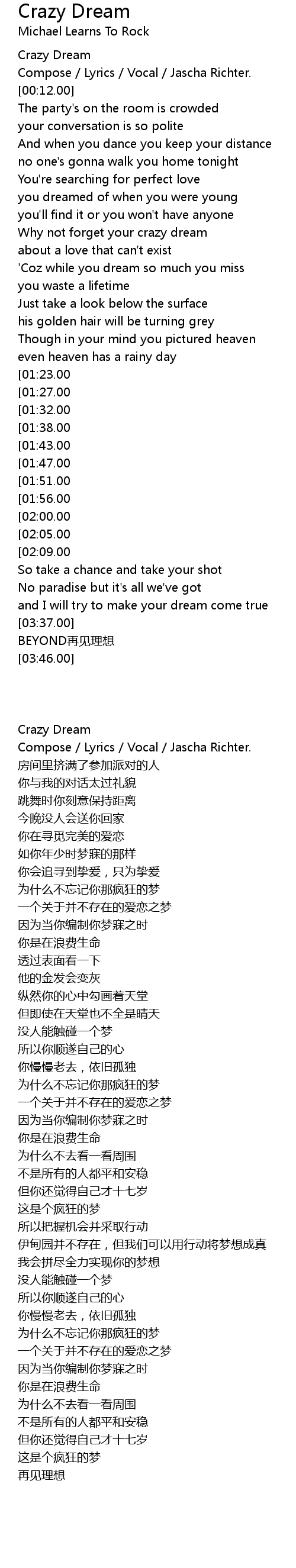 | [03:29.00][02:09.00] | It' s a crazy dream |