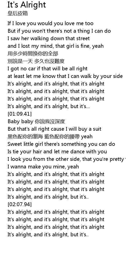 | [02:00.09] | It's alright, and it's alright, that it's alright |