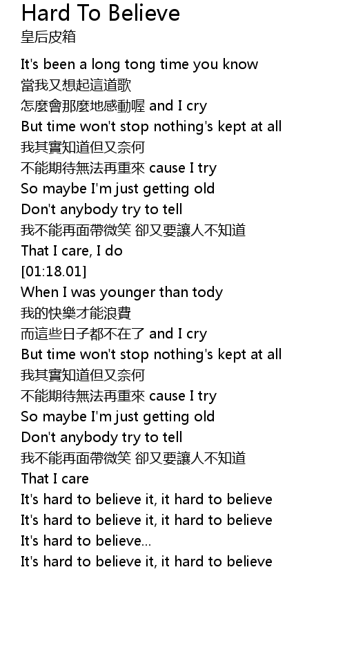 | [02:51.27] | It's hard to believe it, it hard to believe |