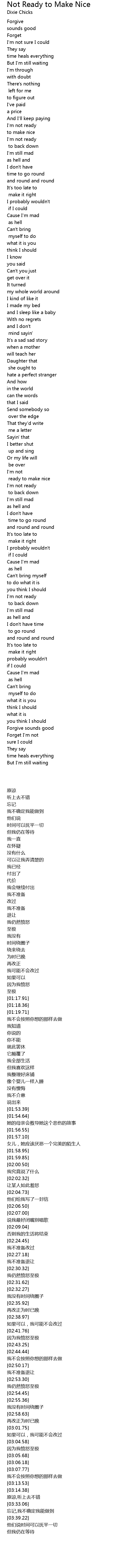 Not Ready to Make Nice Lyrics