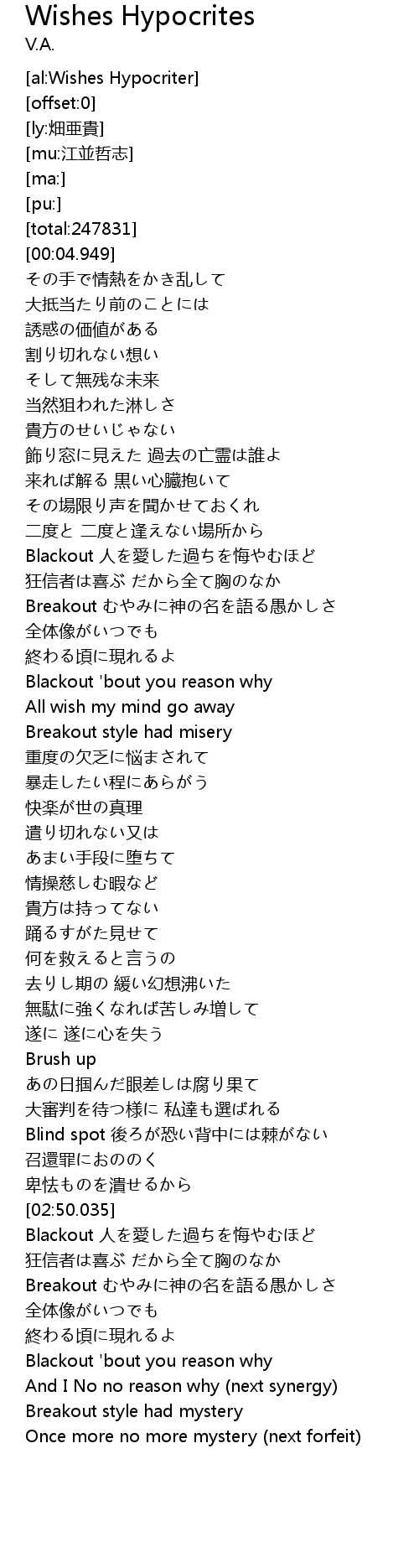 | [03:25.934] | Blackout 人を愛した過ちを悔やむほど |