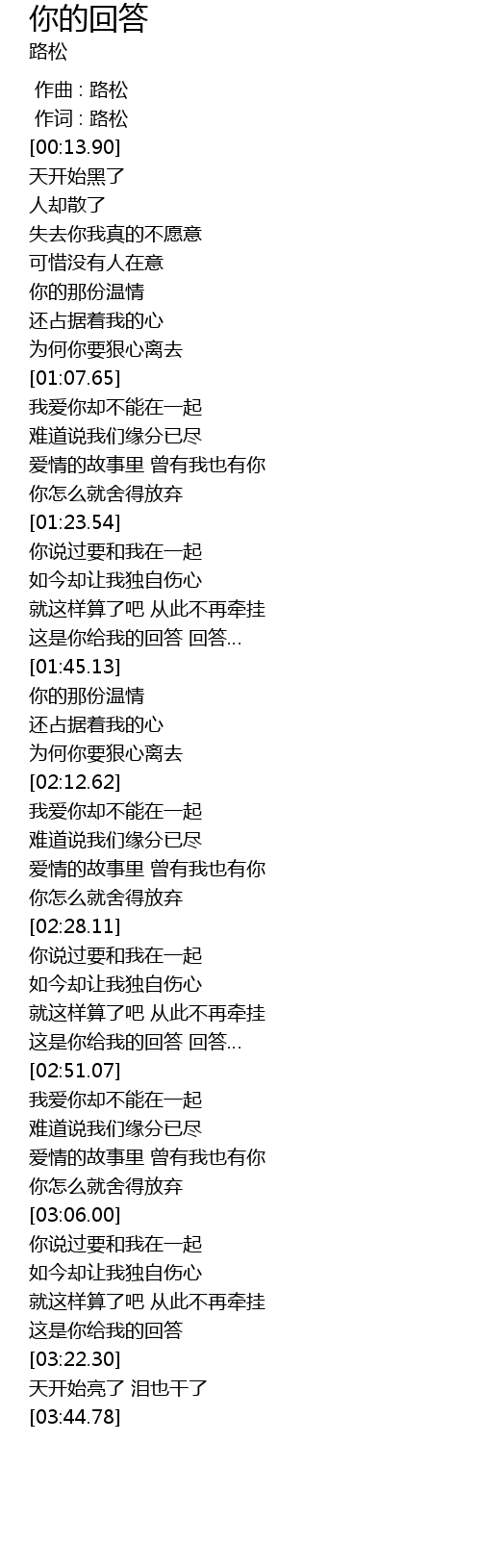 | [03:18.19] | 这是你给我的回答 |