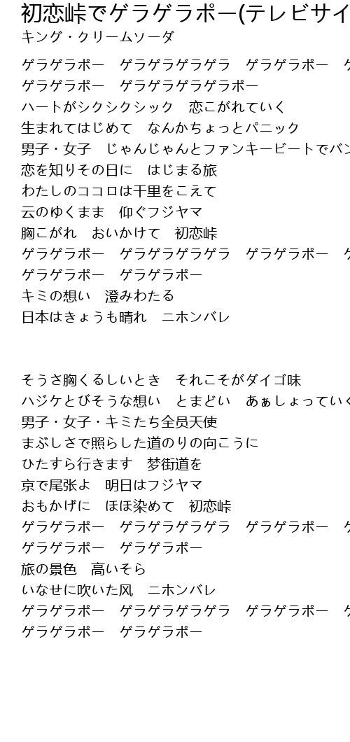 | Song | 初恋峠でゲラゲラポー(テレビサイズ フル) |