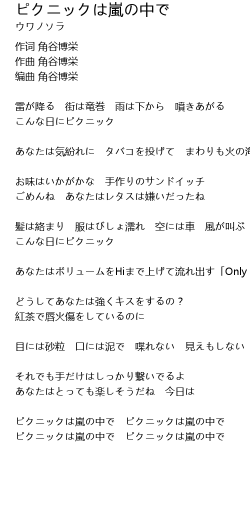 | ピクニックは嵐の中で ピクニックは嵐の中で | |