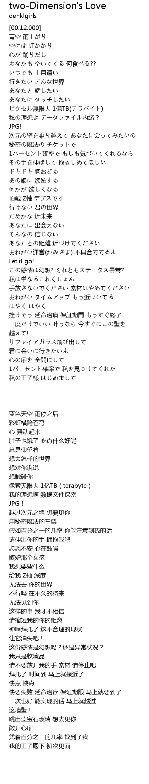 | [00:54.710] | 次元の壁を乗り越えて あなたに会ってみたいの |