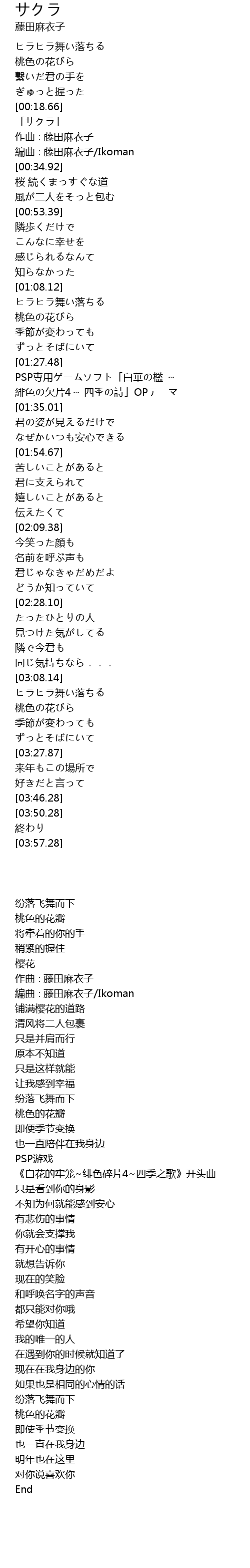 | [00:35.92] | 桜 続くまっすぐな道 |