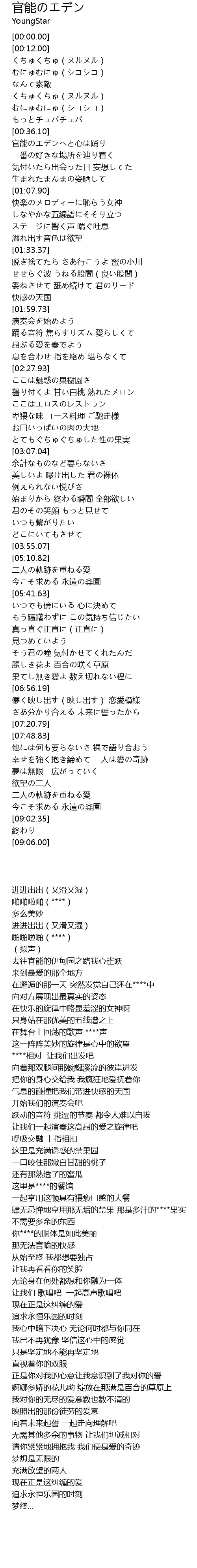 | [00:42.60] | 官能のエデンへと心は踊り |