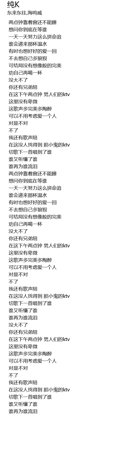 | [00:20.360] | 两点钟靠着窗还不能睡 |