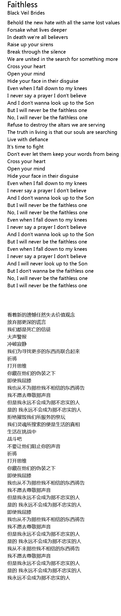 But I will never be the faithless one |