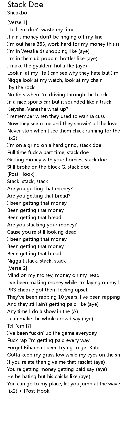 | I'm on a grind on a hard grind, stack doe | |