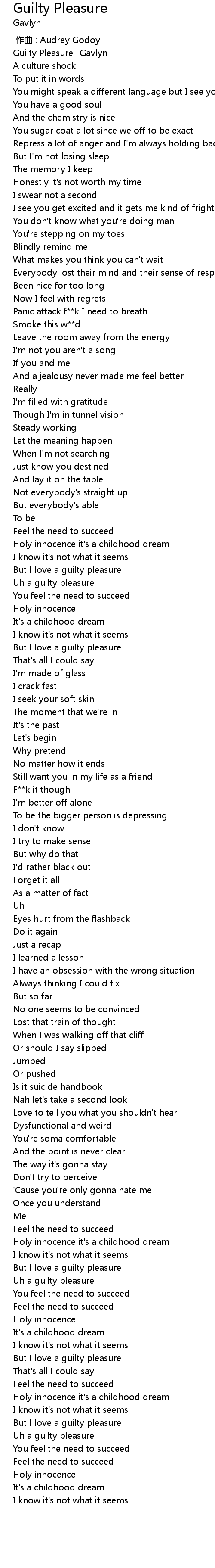 | [00:00.00] | Guilty Pleasure -Gavlyn |