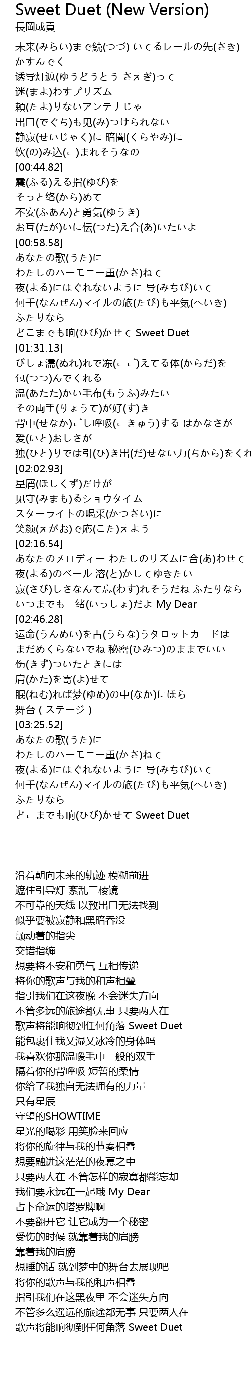 | [03:46.23] | どこまでも响(ひび)かせて Sweet Duet |