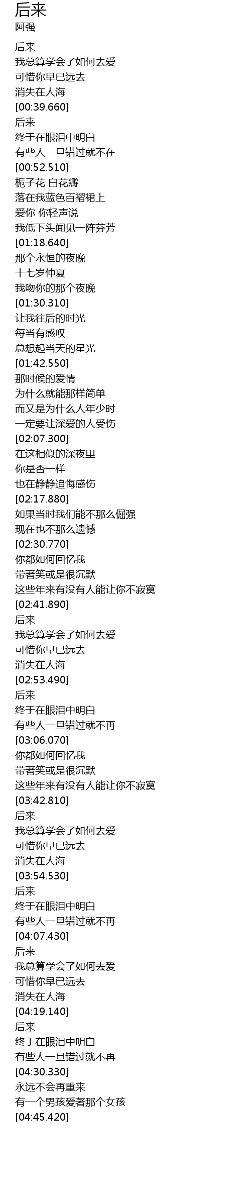 | [04:16.310] | xiāo shī zài rén hǎi |