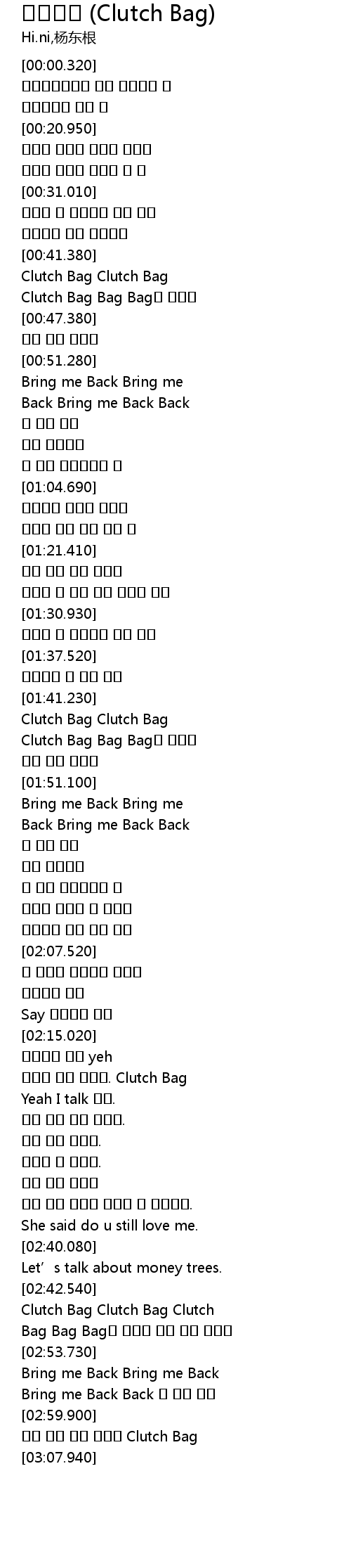 | [00:44.980] | Clutch Bag Bag Bag에 숨겨둔 |