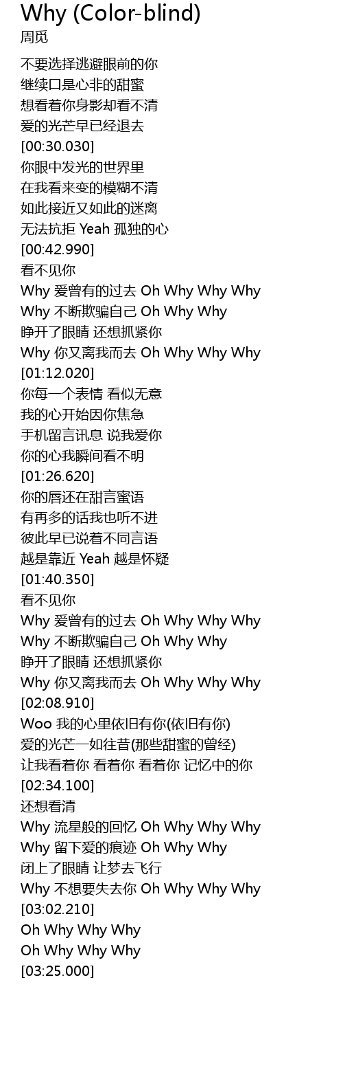 | [02:57.260] | Why 不想要失去你 Oh Why Why Why |