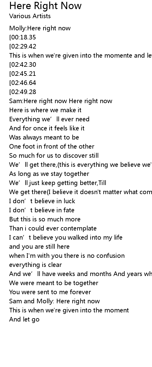 | [00:05.49][00:18.35][00:43.98][02:26.22][02:39.17][02:52.03] | Here right now |