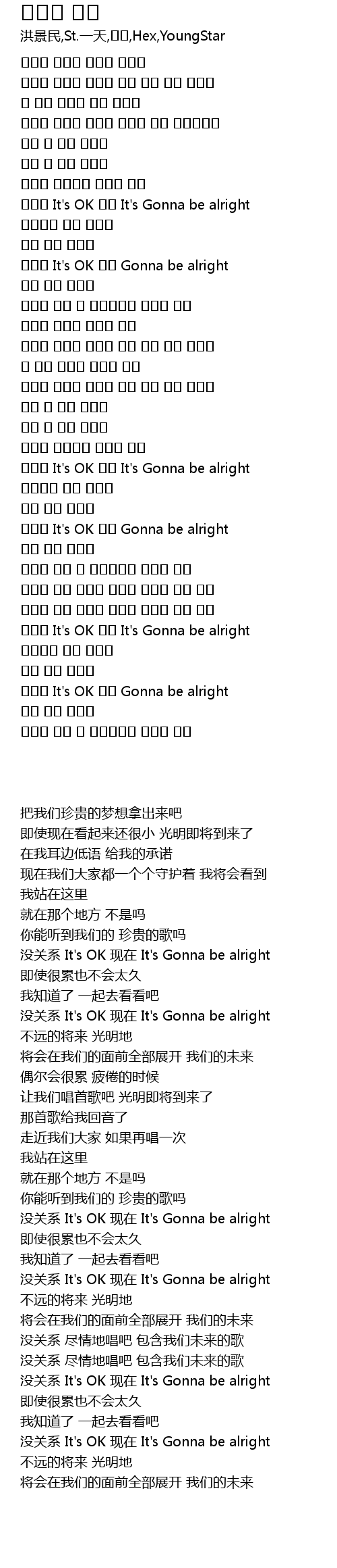 | [01:34.56] | 괜찮아 It's OK 이젠 It's Gonna be alright |