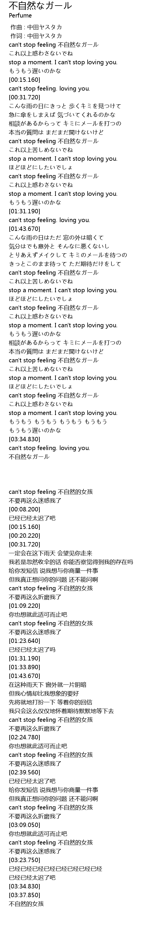 | [03:15.990] | can't stop feeling 不自然なガール |