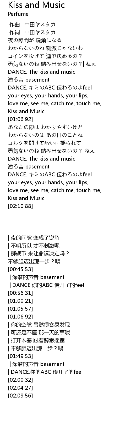 | [00:45.53] | DANCE. The kiss and music |