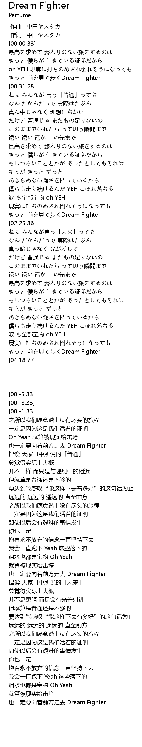 | [02:18.78] | きっと 前を見て歩くDream Fighter |