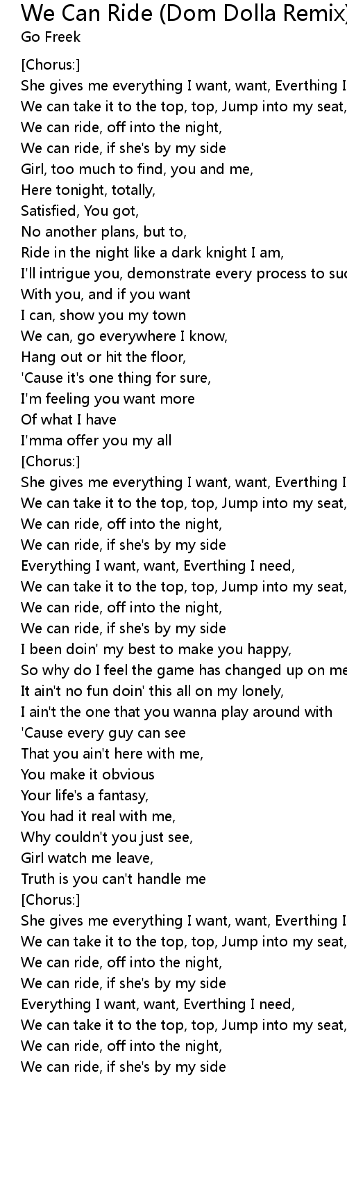 We Can Ride (Dom Dolla Remix) Lyrics