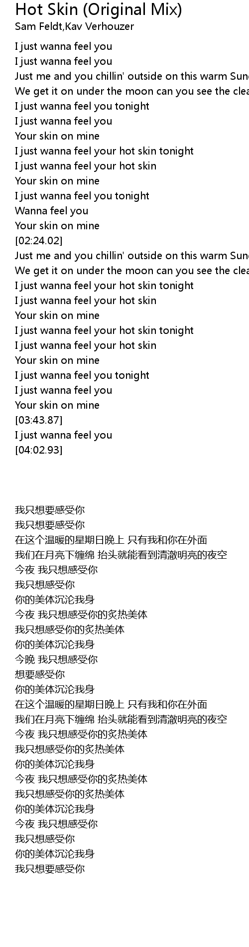 | [03:02.55] | I just wanna feel your hot skin |