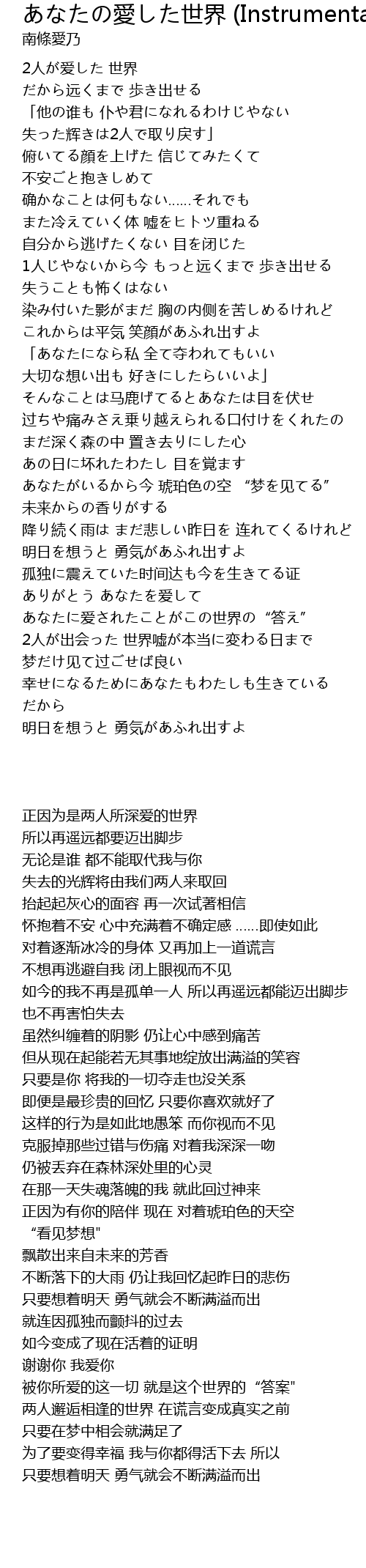 | [00:01.200] | 2人が爱した 世界 |