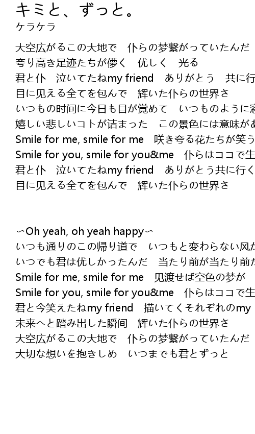 キミと、ずっと。 . Lyrics