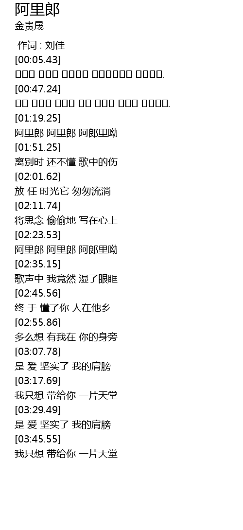 | [01:41.64] | a lǐ láng a lǐ láng ā láng lǐ yōu |