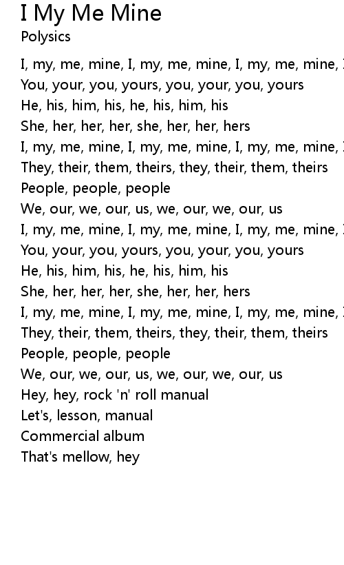 I, my, me, mine, I, my, me, mine, I, my, me, mine, I, my, me |