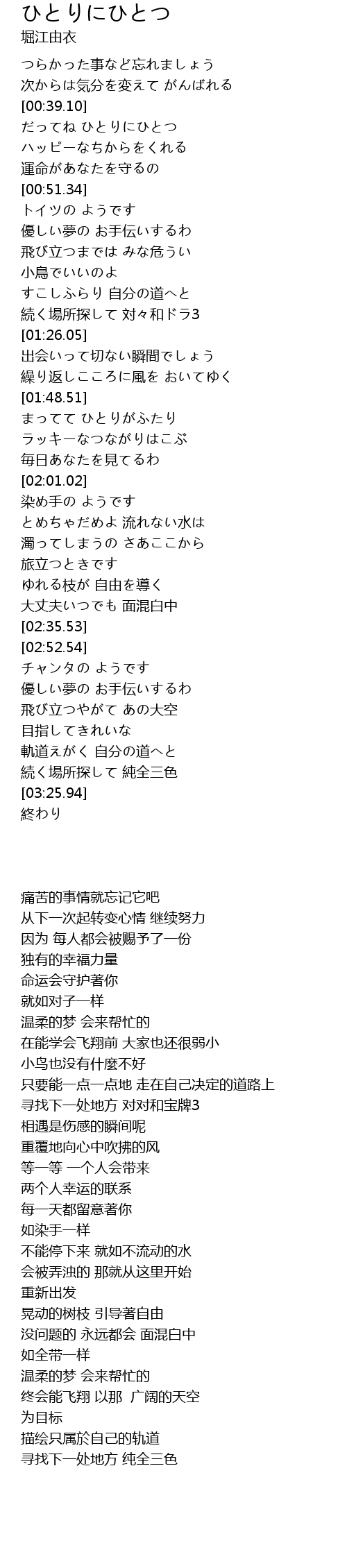 | [00:39.46] | だってね ひとりにひとつ |
