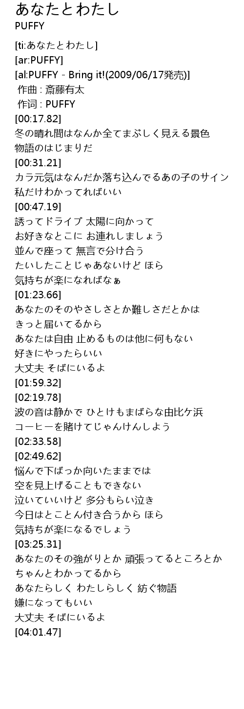 | [al:PUFFY - Bring it!(2009/06/17発売)] | |