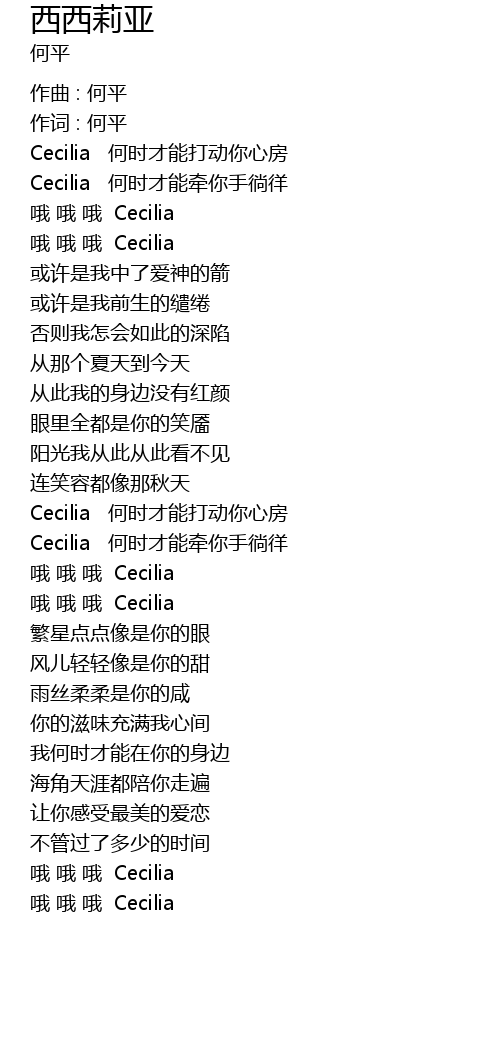 | 哦 哦 哦 Cecilia |