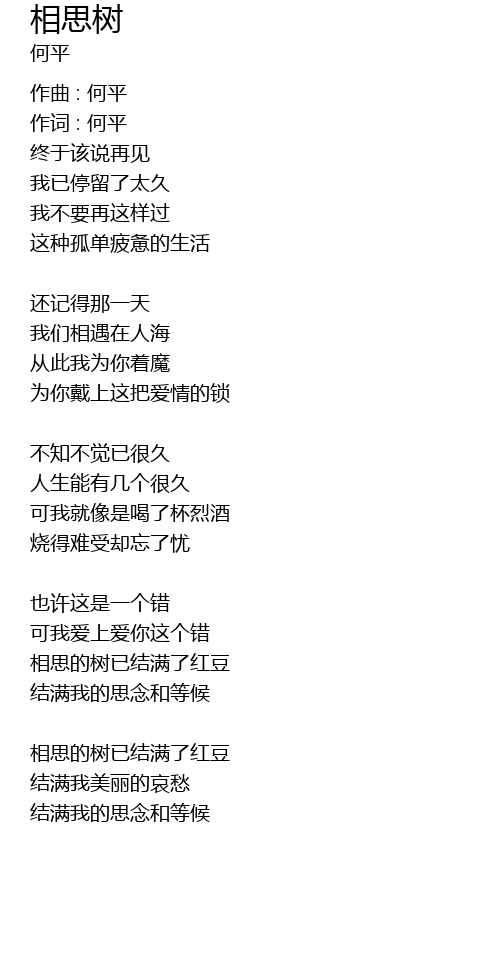 | 作词 : 何平 | |