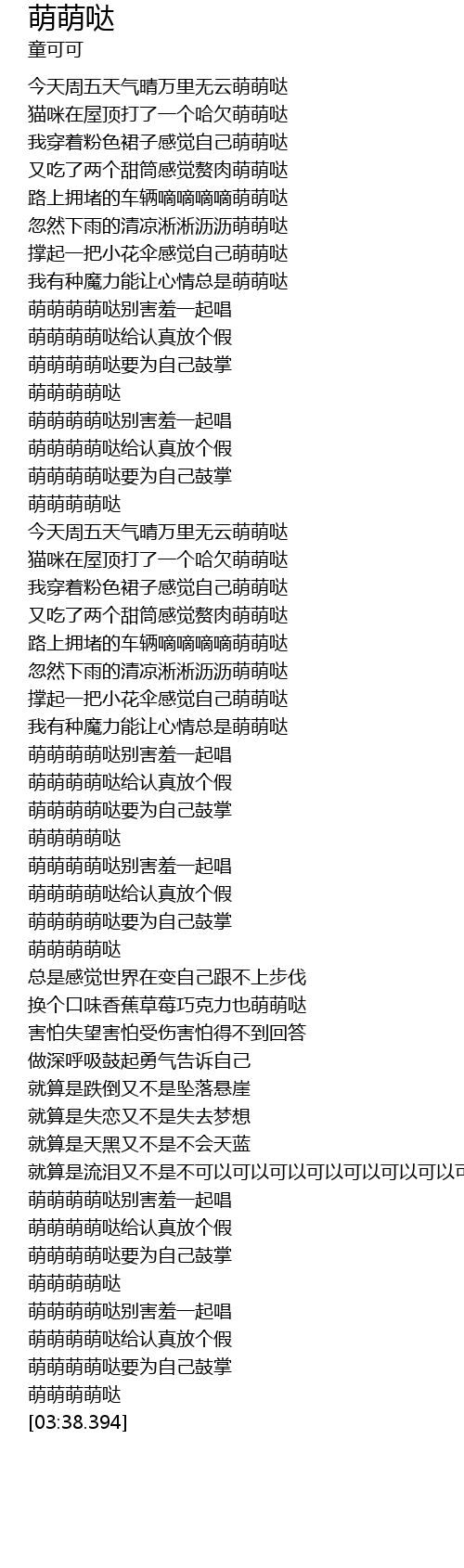 | [03:15.393] | 萌萌萌萌哒要为自己鼓掌 |